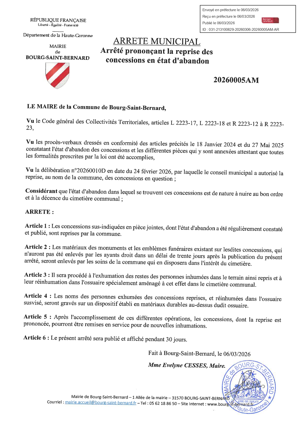 Arrêté prononçant la reprise des concessions en état d'abandon